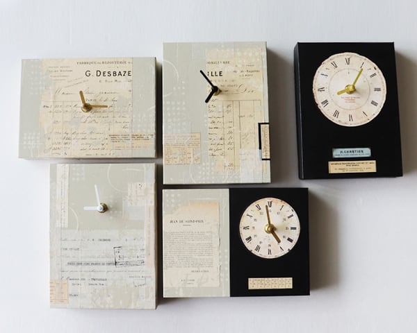 このワークショップでは「ヴィンテージ風」と「ペインティングコラージュ」、2種のペイントクロック作りを体験して頂けます。