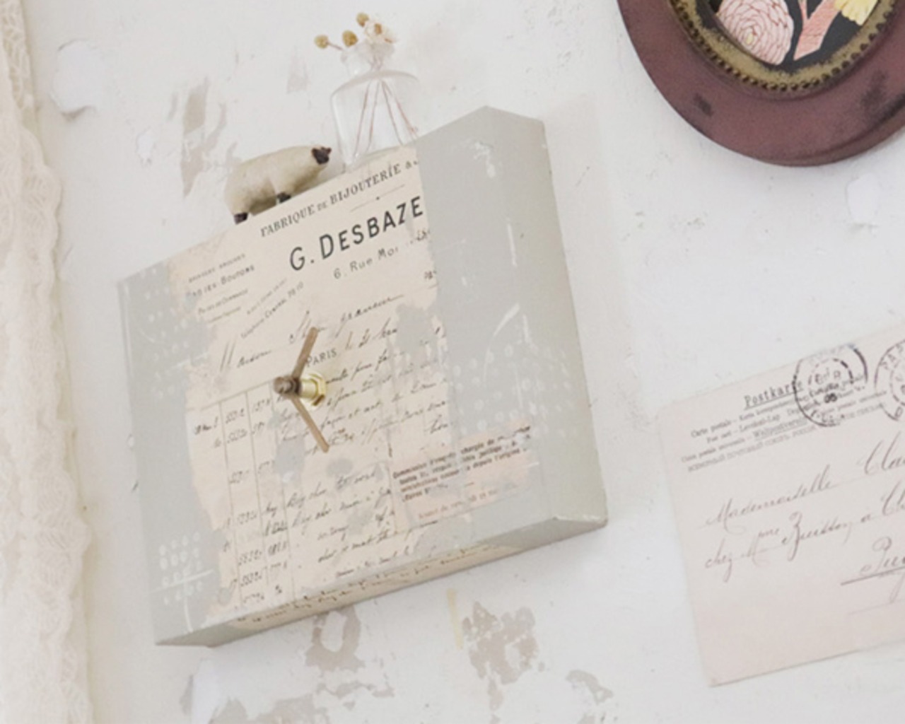 このワークショップでは「ヴィンテージ風」と「ペインティングコラージュ」、2種のペイントクロック作りを体験して頂けます。